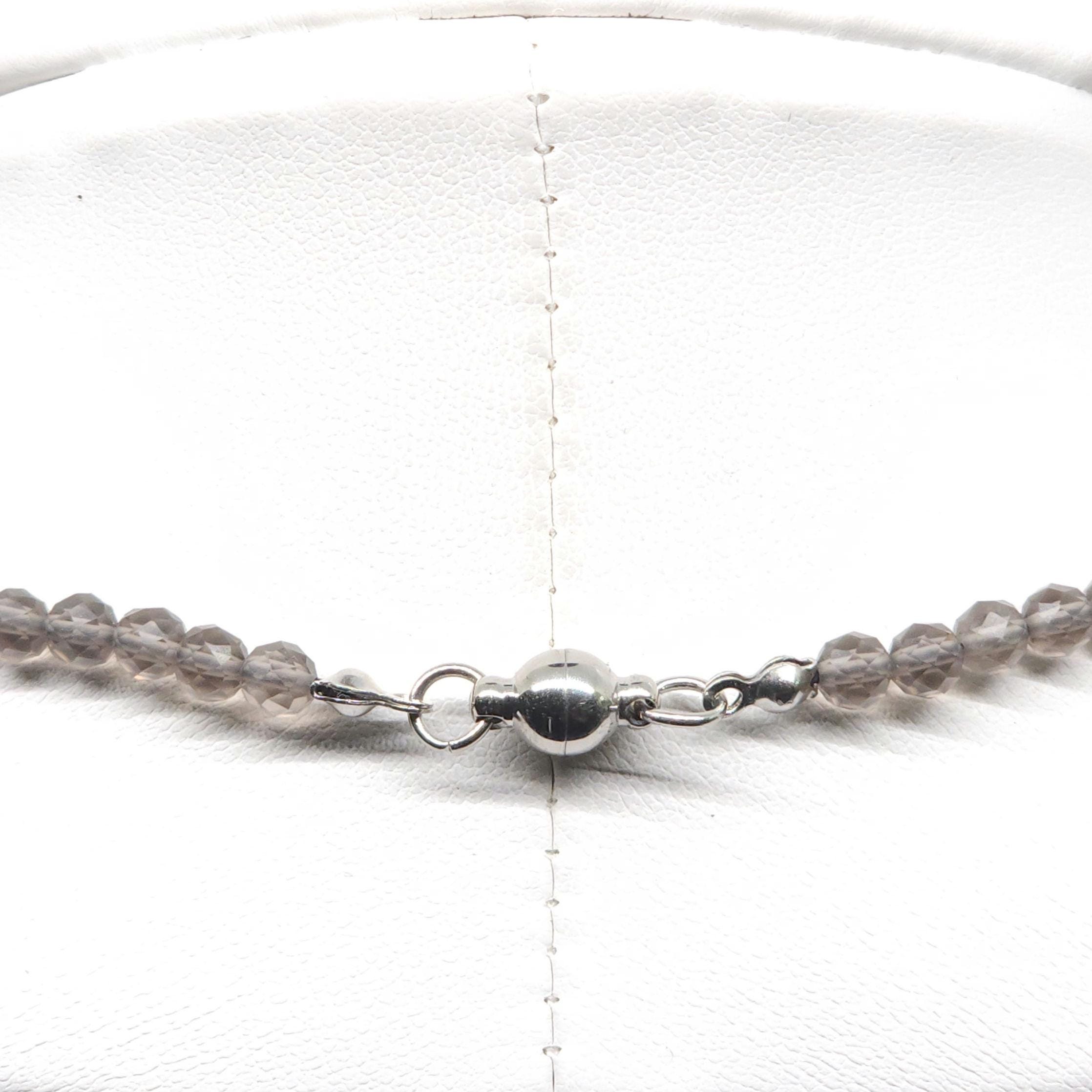 This single strand choker/necklace is made from all natural 4mm faceted Smoky Quartz on silk, made to the length of your choosing. It has platinum plated sterling silver and high quality stainless steel findings, and is finished with a high quality stainless steel magnetic clasp. The hypoallergenic version comes with all pure Argentium silver findings and will not cause a reaction with your skin and the metal.