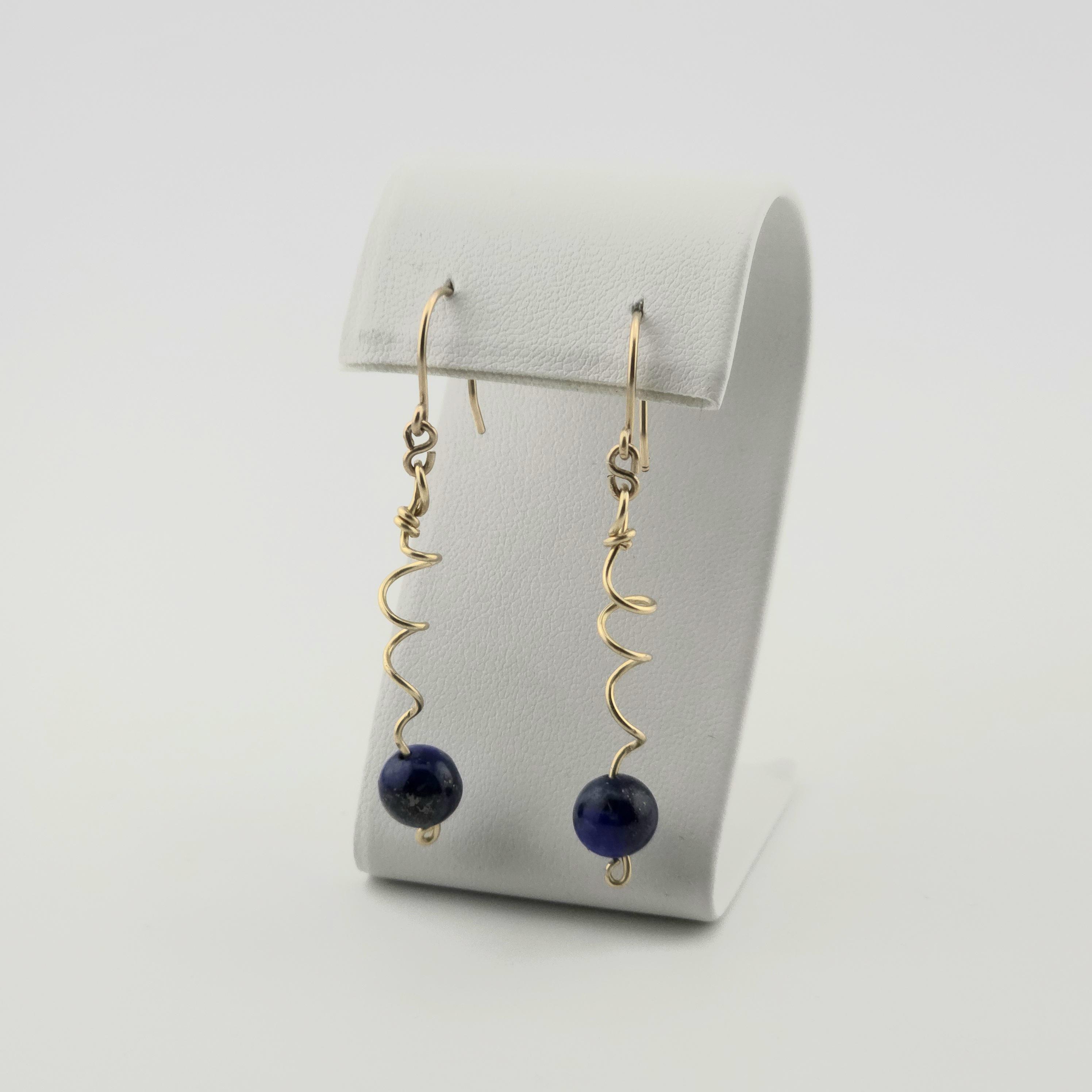 I made this pair of earrings using Lapis Lazuli and 20 gauge, 12k solid gold-filled wire. Made with genuine gemstone and 12k solid gold only. They drop 1½" and are ¼" wide.