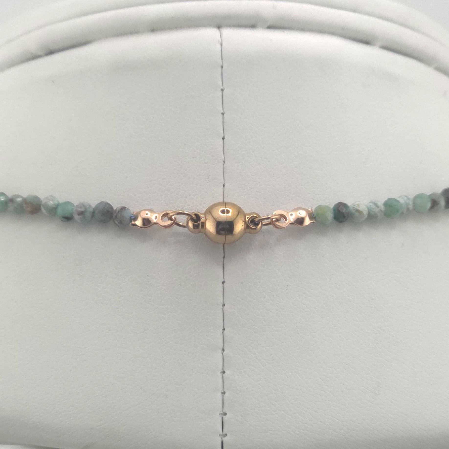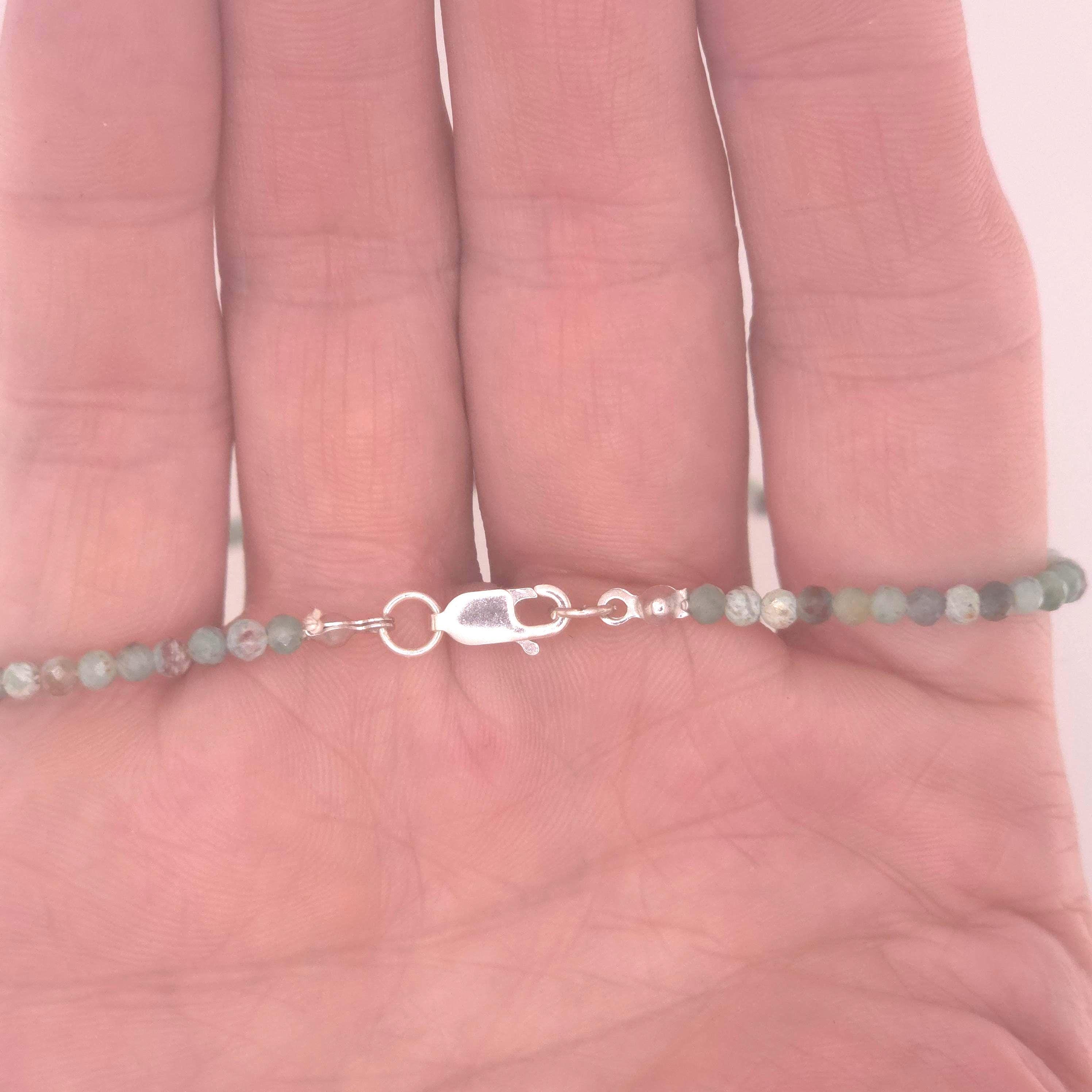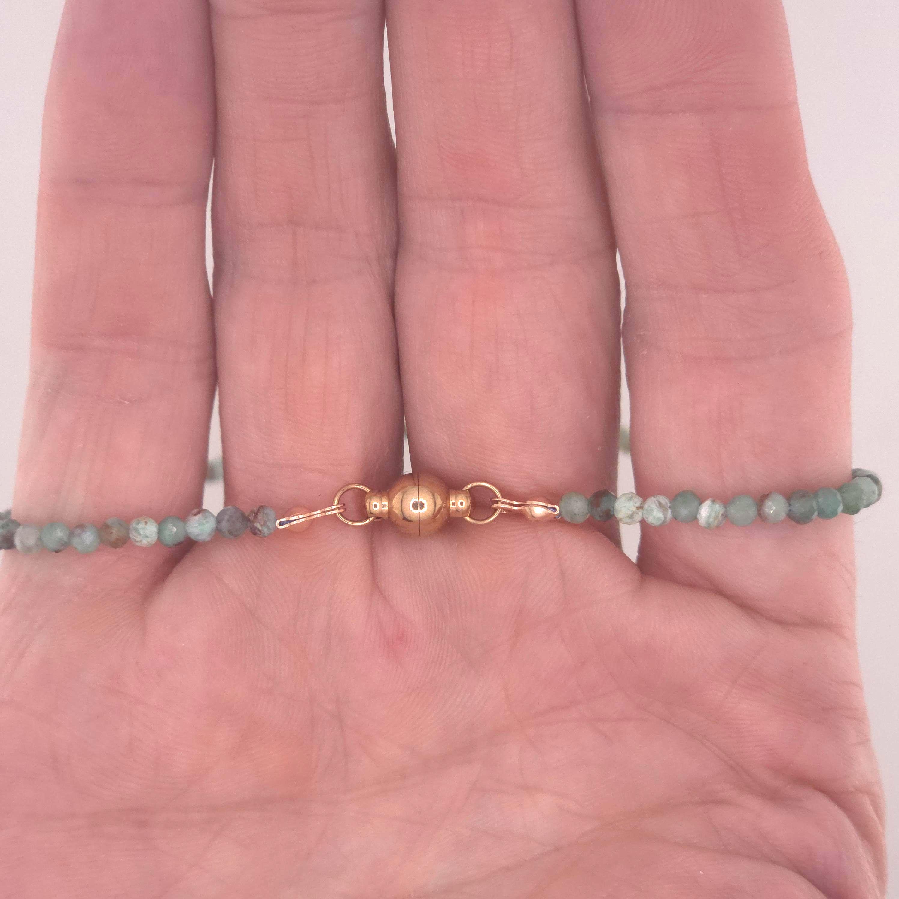 This single strand necklace is made from all natural 3mm faceted Phoenix Stone on silk. It has rose gold plated sterling silver and high quality stainless steel findings, and is finished with a high quality stainless steel magnetic clasp. The hypoallergenic version comes with all pure Argentium silver findings and will not cause a reaction with your skin and the metal.