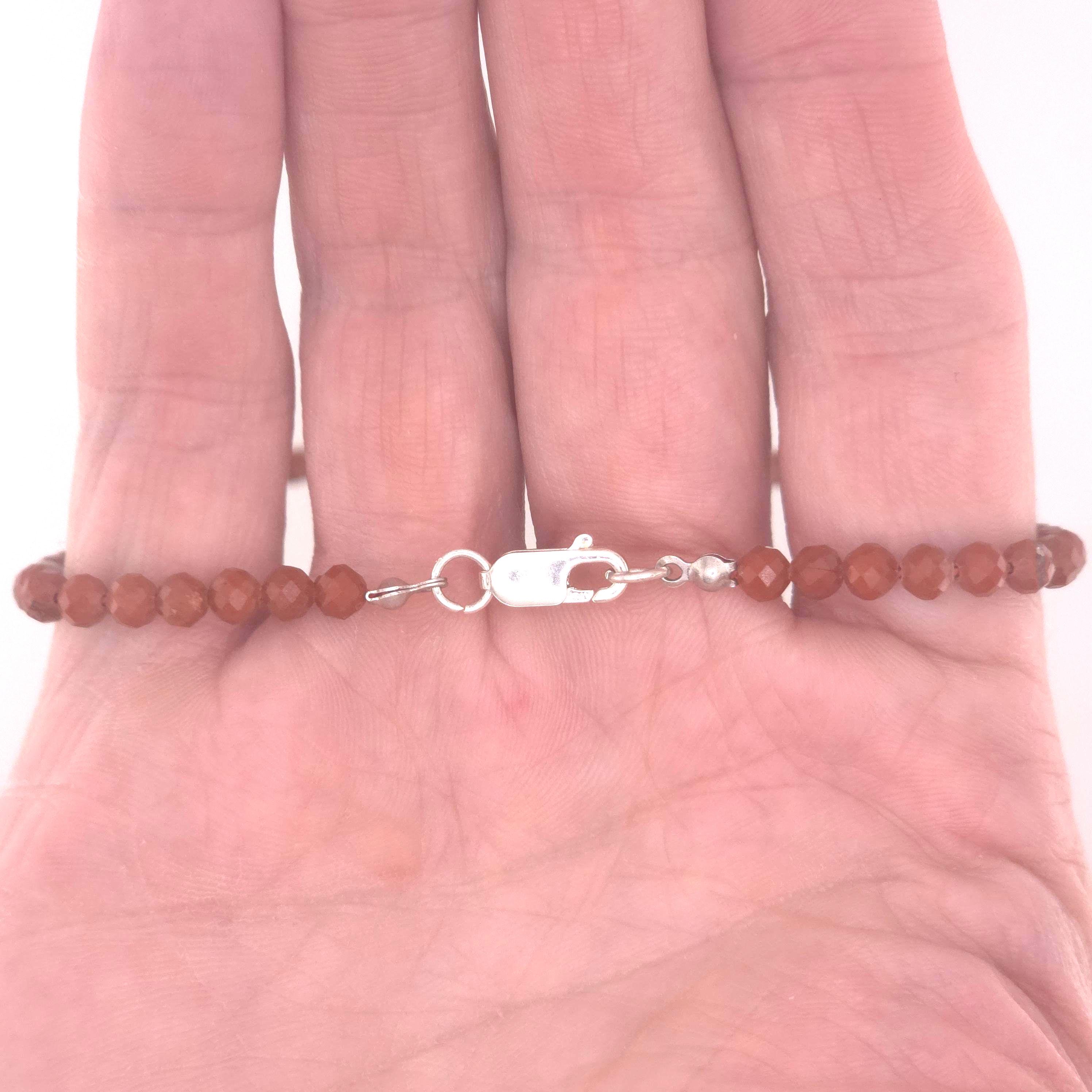 This single strand choker/necklace is made from all natural 4mm faceted Red Jasper on silk, made to the size of your choosing. It has platinum-plated sterling silver and high quality stainless steel findings, and is finished with a high quality stainless steel magnetic clasp. The hypoallergenic version comes with all pure Argentium silver findings and will not cause a reaction with your skin and the metal.