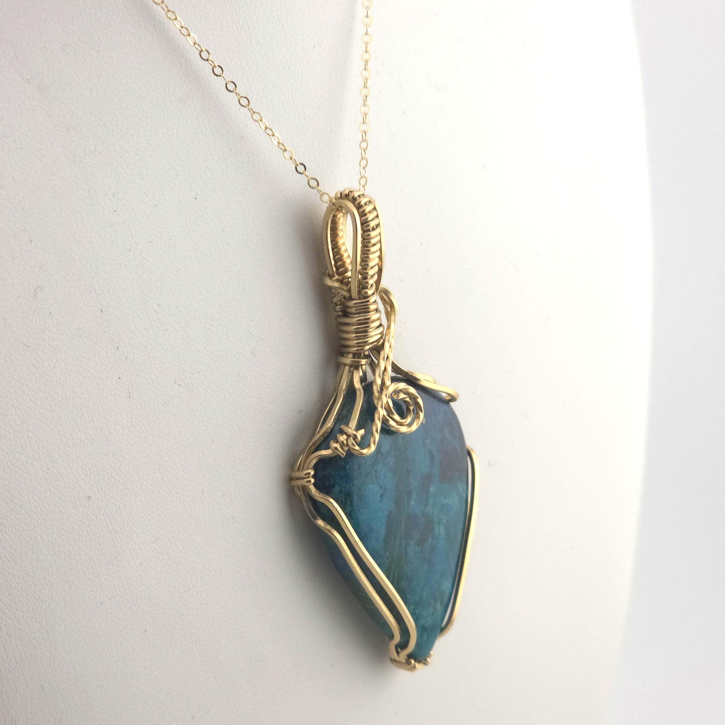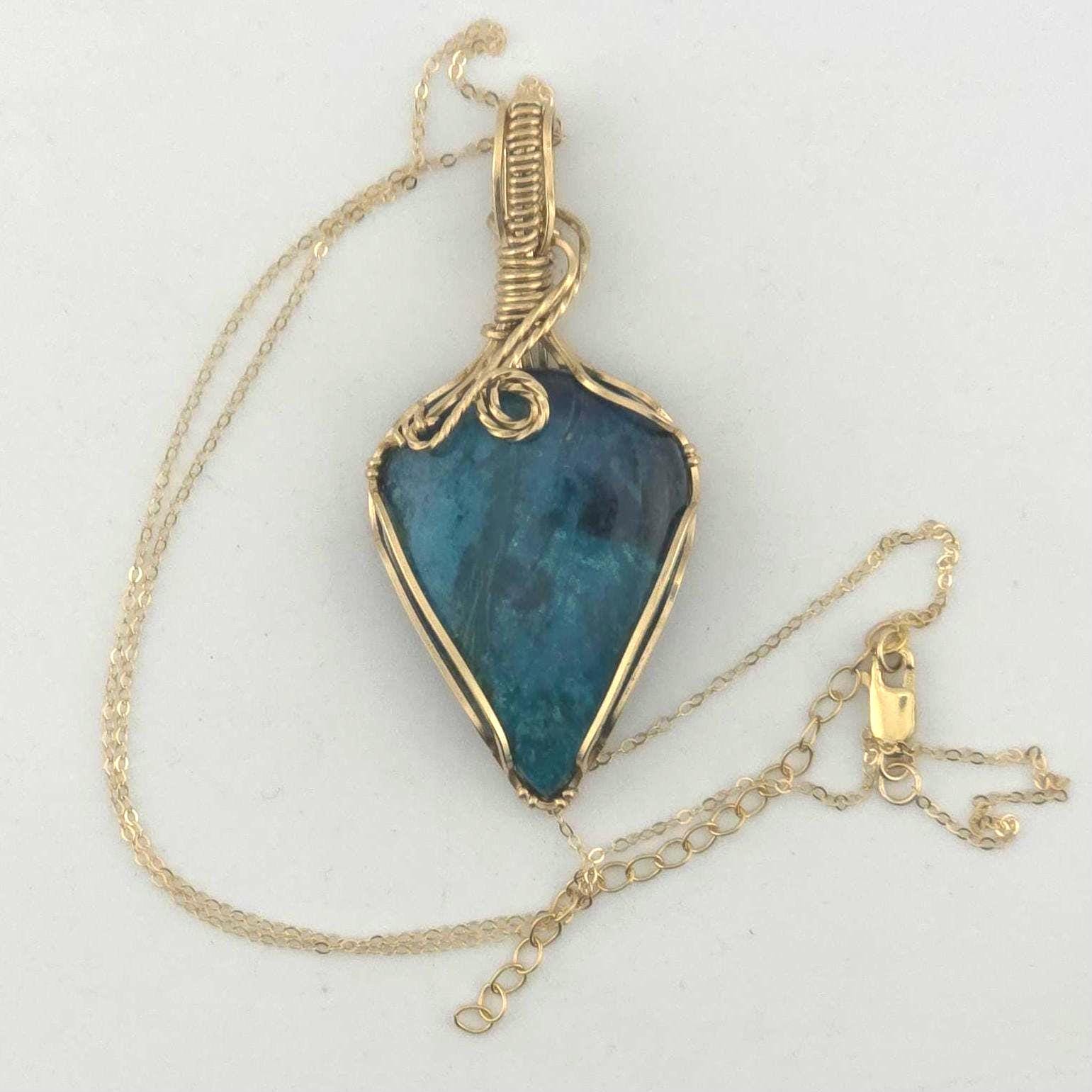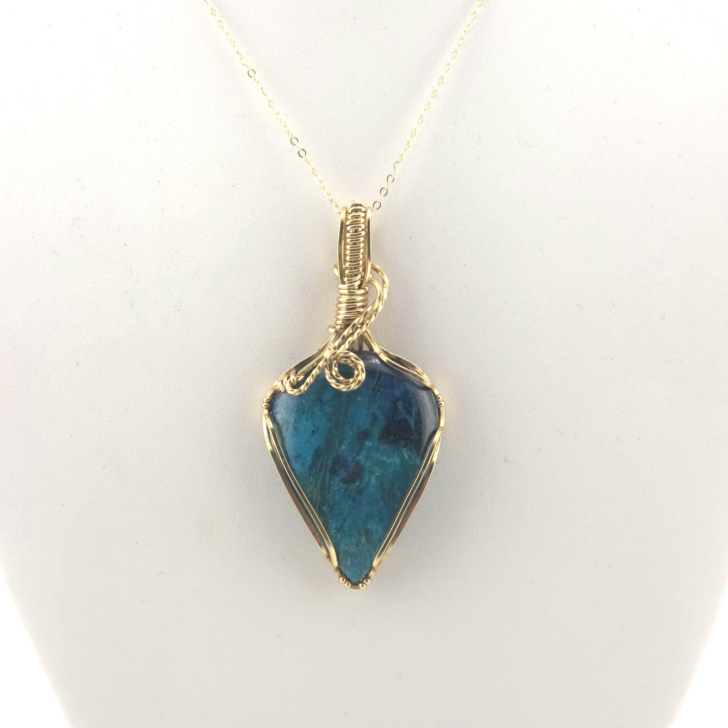 Shattuckite Pendant Necklace | Handmade in Gold Filled Wire | Anniversary/Birthday/Graduation Gift | Luxury Present