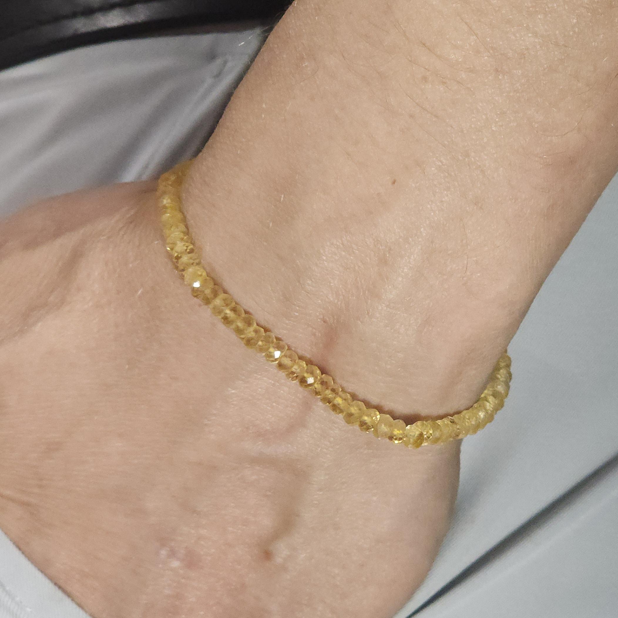 This bracelet is made of all genuine 4mm faceted rondell Citrine (3A Quality). It's put together with soft, polyester string.